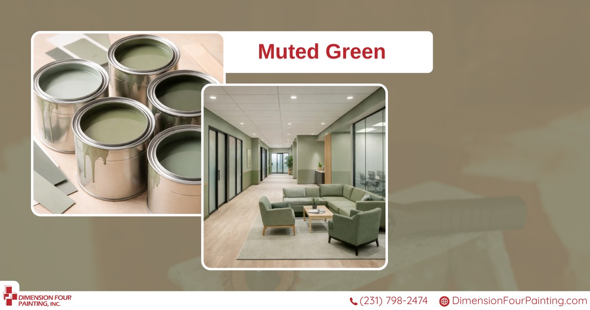 Muted greens (especially sage and eucalyptus tones) are gaining traction in commercial interiors because they feel restorative without being distracting. These colors subtly reference nature, which helps improve comfort and focus in indoor environments.